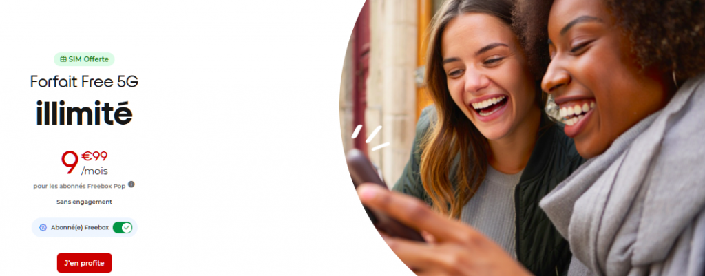 Mais, pour les abonnés Freebox Pop, le prix du forfait Free 5G est réduit à seulement 9,99 €/mois et l’enveloppe data devient illimitée en 4G/5G. C’est l’offre idéale pour le streaming, le visionnage de vidéos et le jeu en ligne sans aucune restriction. Cet avantage est exclusif aux abonnés Freebox Pop et reste valide tant que l’abonnement Freebox et le forfait Free 5G sont actifs. Les abonnés des autres offres Freebox ne bénéficient pas systématiquement de cet avantage de base.